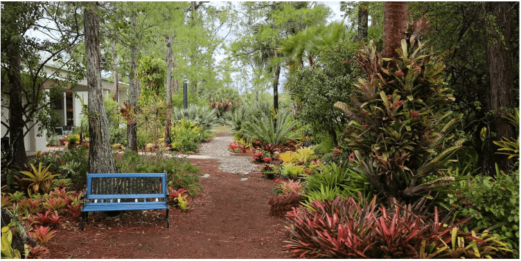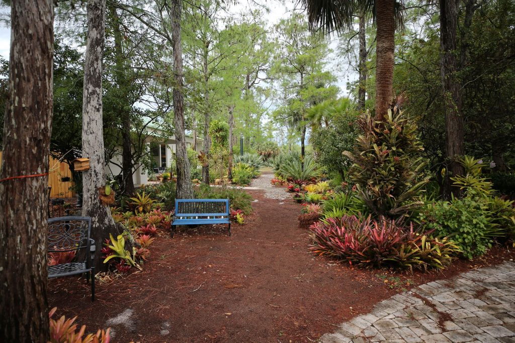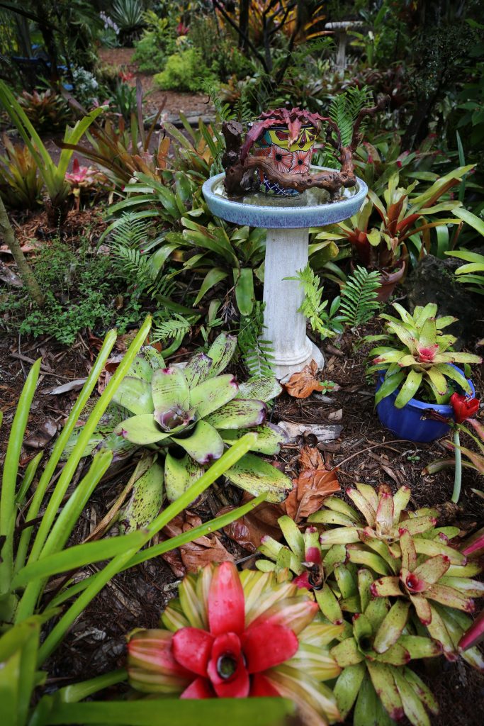 As you stroll through the garden you will find the majority of the plants are bromeliads. Out of 3500 species of bromeliads, we have about 100 interesting specimens, each with its own unique eye-catching leaf patterns or annual bloom displays.
